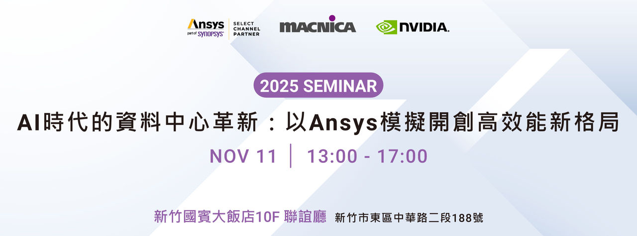 本次研討會以「Re-engineering the Future of Data Centers — AI 時代的資料中心革新:以 Ansys 模擬開創高效能新格局」為主題,將聚焦 Ansys 模擬技術如何結合 AI 加速、光電整合與新興運算架構,推動資料中心與先進封裝的技術革新。